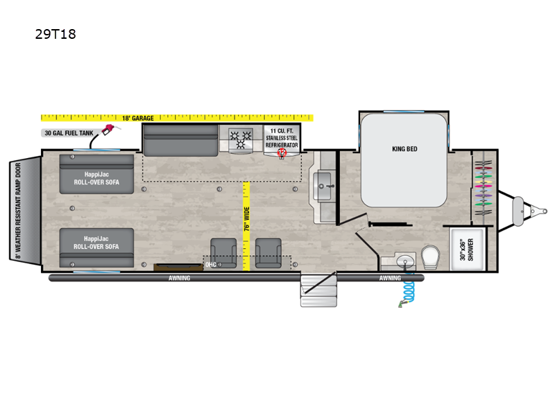 Beyond its practical features, the Valor 29T18 is built for those who love to bring their toys along for the ride. With ample storage space and a durable build, you can easily transport your favorite outdoor gear, from bikes to kayaks. Whether you're hitting the open road or setting up camp in a scenic spot, the 2023 Alliance RV Valor 29T18 Toy Hauler is your ticket to unforgettable experiences. Embrace the freedom of the open road and make every journey a memorable one with this exceptional RV.