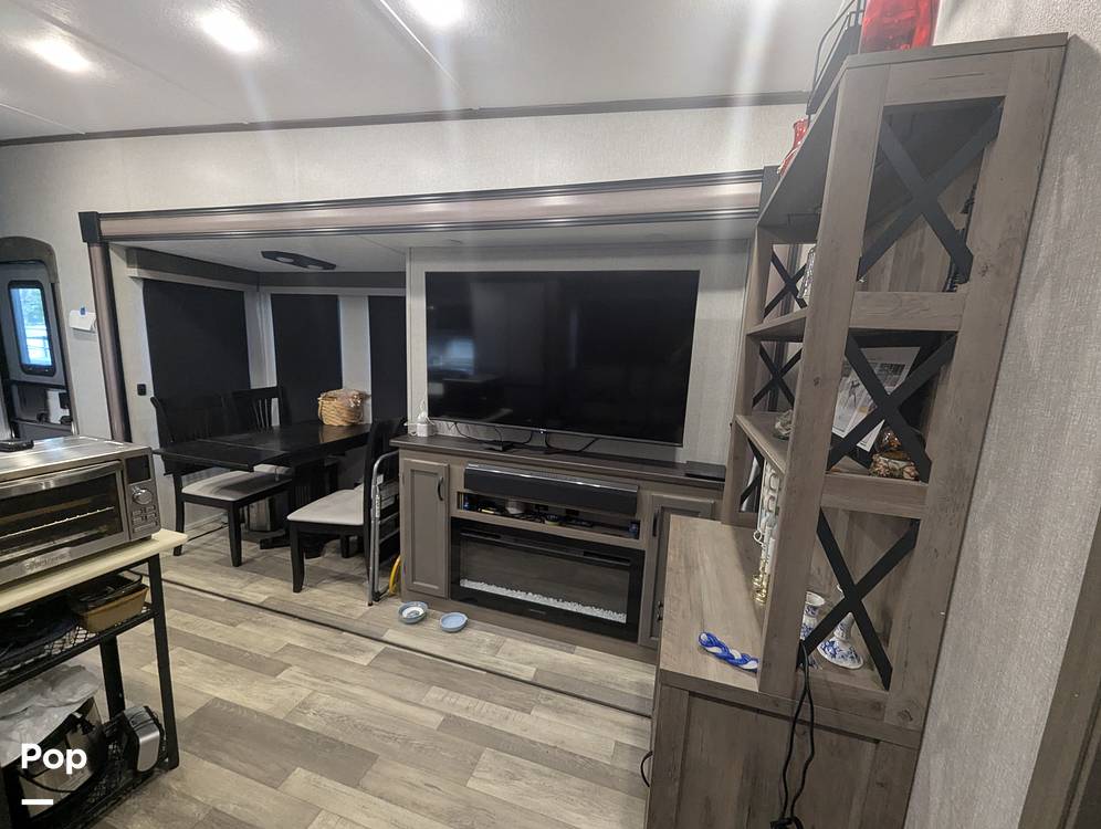 Step inside and you'll find a cozy and inviting interior that feels just like home. The Chaparral 373 MBRB boasts a well-designed layout with all the amenities you need for a comfortable stay. The kitchen is fully equipped with modern appliances, making meal prep a breeze. The living area is perfect for relaxing after a day of adventure, and the multiple sleeping areas ensure everyone has a comfy place to rest their head. Plus, with plenty of storage space, you can bring along all your gear and essentials without a worry.
