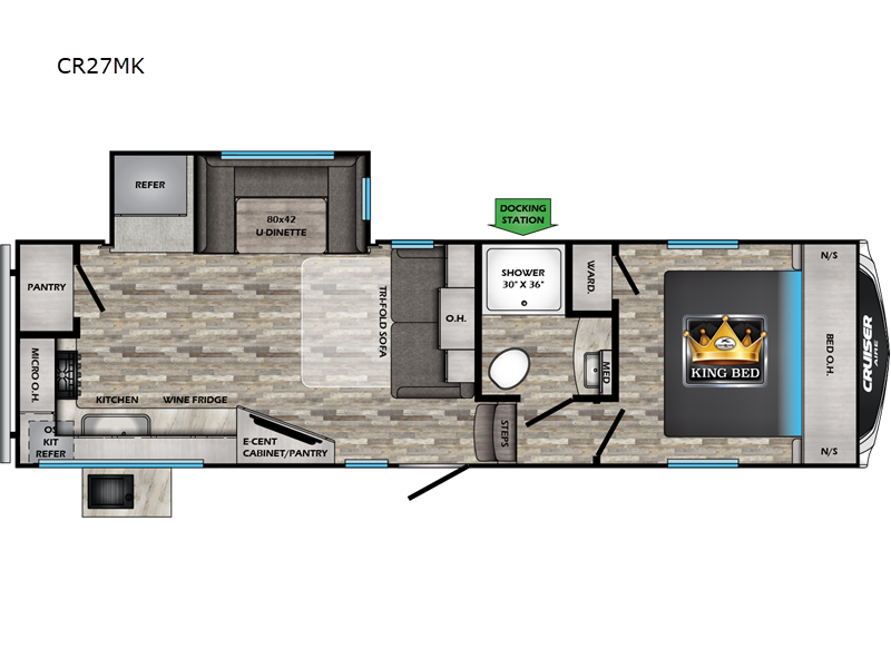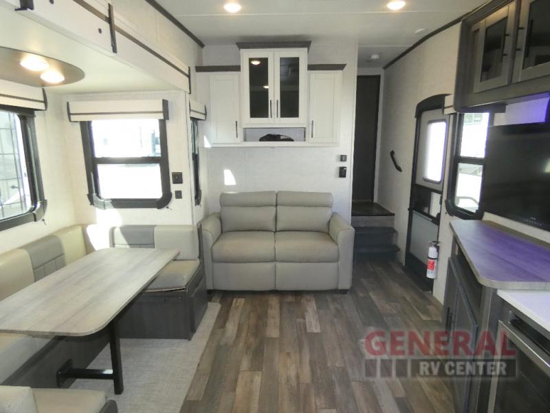Inside, you'll find a well-appointed living area with modern furnishings and a fully equipped kitchen, perfect for preparing meals on the go. The RV's efficient use of space ensures that you have all the comforts of home, including ample storage for your belongings. Whether you're exploring the great outdoors or enjoying a quiet evening indoors, the 2023 CrossRoads RV Cruiser Aire CR27MK Fifth Wheel offers the perfect balance of luxury and practicality. Don't miss the opportunity to own this exceptional RV and embark on your next adventure with confidence and style.