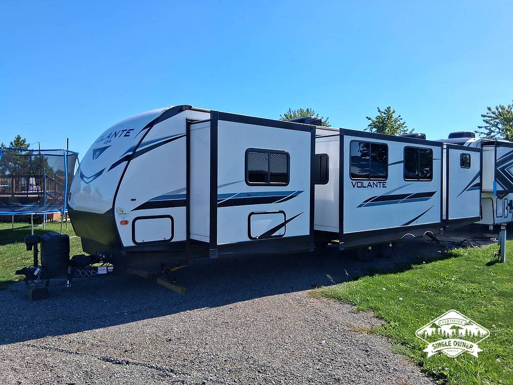 Step inside to discover a thoughtfully designed interior that maximizes space and comfort. The Volante 34BH features a well-appointed kitchen equipped with modern appliances, ensuring you can prepare meals with ease. The living area is designed for relaxation, with plush seating and entertainment options to keep everyone engaged. The sleeping arrangements include a master bedroom, bunk beds, and convertible furniture, providing versatile options for a restful night's sleep.