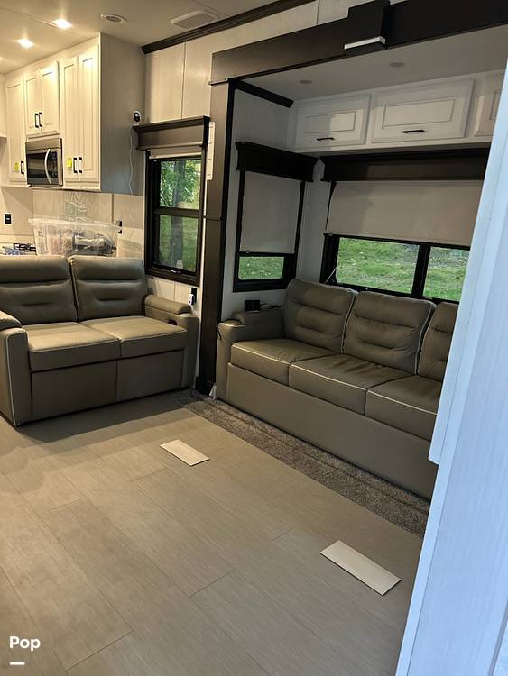 Introducing the 2023 DRV Mobile Suites 41RKDB Fifth Wheel, a luxurious haven on wheels designed for those who seek the ultimate in comfort and style while exploring the open road. This meticulously crafted RV offers a spacious and elegant living environment, perfect for both short getaways and extended adventures. With a length of 36 feet, this fifth wheel provides ample space for relaxation and entertainment, ensuring that every journey is as enjoyable as the destination.