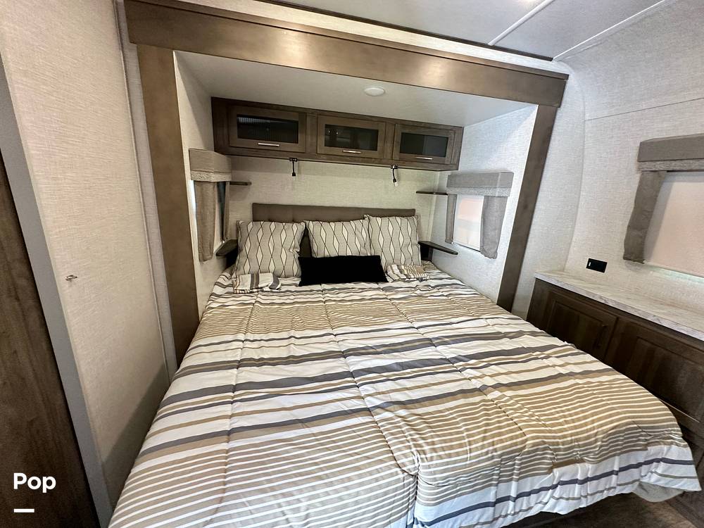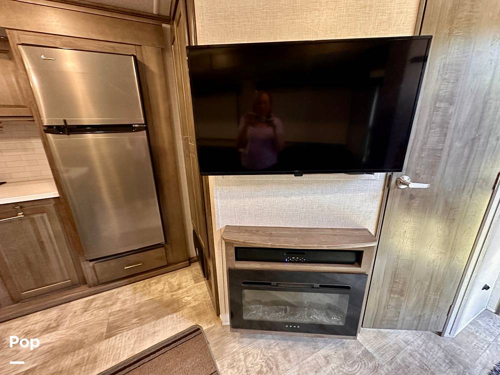 Inside, you'll find a well-thought-out layout that maximizes space and functionality. The living area is perfect for hanging out, with plenty of seating and a modern entertainment system to keep everyone entertained on those rainy days. The kitchen is fully equipped with all the essentials, including a fridge, stove, and microwave, making meal prep a breeze. Plus, there's ample storage throughout the trailer, so you can bring along all your favorite gear and gadgets.