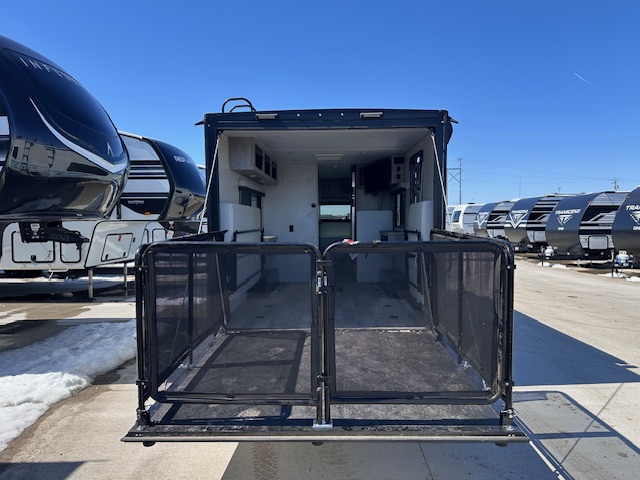 Inside, you'll find a cozy haven that sleeps up to four people, perfect for family trips or a getaway with friends. The clever layout maximizes space, offering a comfortable sleeping area, a fully-equipped kitchenette, and a stylish bathroom. Whether you're whipping up a quick meal or unwinding after a day of adventure, you'll appreciate the thoughtful design and quality finishes throughout. Plus, the ToyHauler feature means you can bring along your favorite outdoor gear, from bikes to kayaks, ensuring you're always ready for the next thrill.