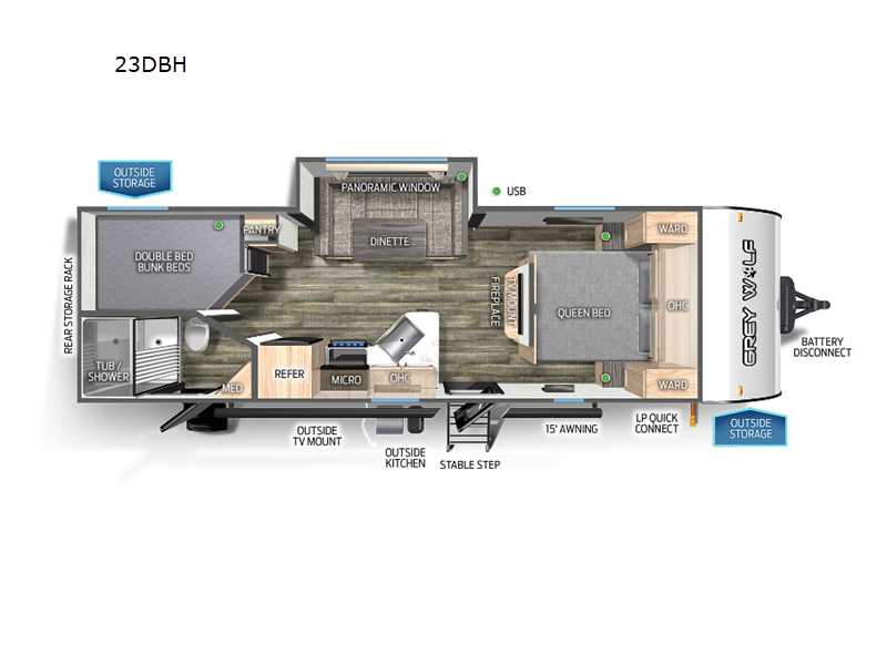 2023 Forest River RV Cherokee Grey Wolf 23DBH Corner Bunks & Solar