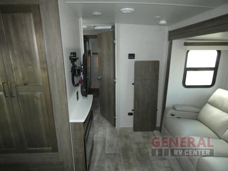The Rockwood Mini Lite 2516S features two slide-outs, providing ample space for relaxation and entertainment. Inside, you'll find a cozy sleeping arrangement for two, ensuring a restful night's sleep after a day of adventure. The interior is thoughtfully designed with modern amenities and high-quality finishes, making it a home away from home. The kitchen is equipped with all the essentials, allowing you to prepare meals with ease, while the living area offers a comfortable space to unwind.