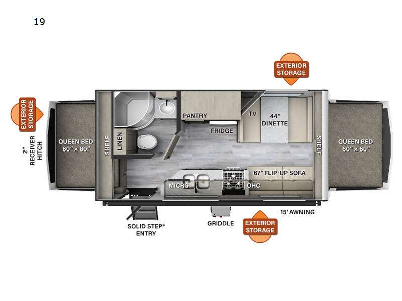 Introducing the 2023 Forest River RV Rockwood Roo 19 Hybrid, a versatile and reliable travel companion designed for families and adventurers alike. This hybrid RV combines the best of both worlds, offering the comfort of a traditional RV with the flexibility of a tent camper. With a length of 18 feet, it provides ample space for your travels while remaining compact enough for easy maneuverability and storage.