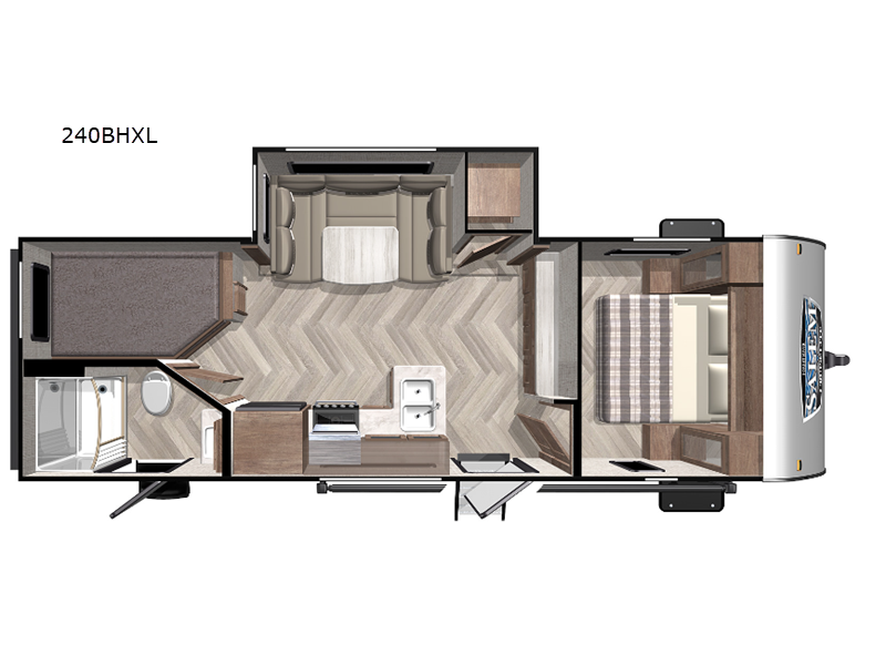 Inside, you'll find a well-equipped kitchen, a comfortable seating area, and ample storage space to keep your belongings organized. The thoughtful layout ensures that every inch of space is utilized efficiently, making it a home away from home. Whether you're cooking up a feast or enjoying a movie night, the Salem Cruise Lite offers the perfect setting for memorable moments. Embrace the freedom of the open road with this exceptional travel trailer, and make every journey an unforgettable adventure.