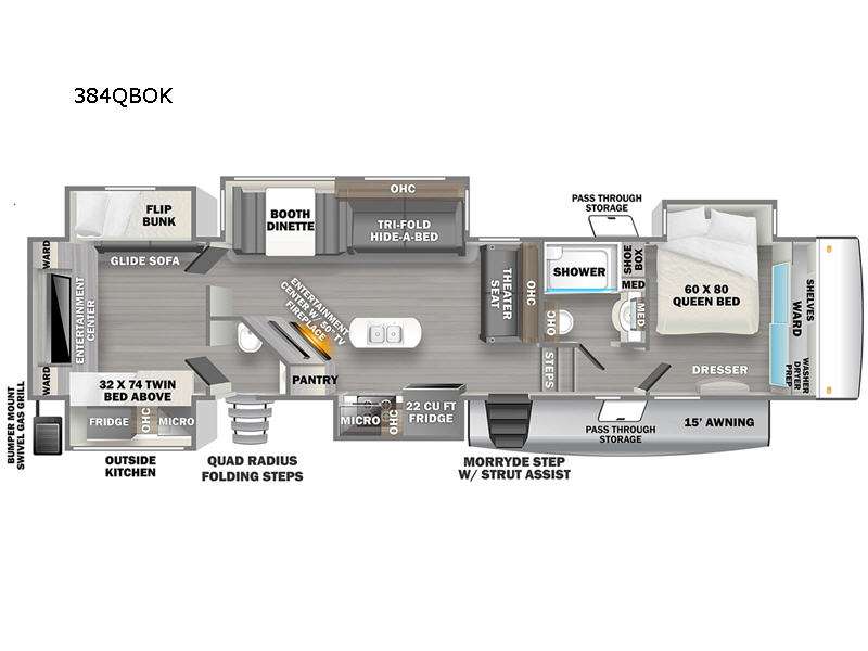 The Sandpiper Luxury 384QBOK measures 42 feet in length, offering a perfect balance of space and maneuverability. Its exterior is crafted with durability and style in mind, featuring high-quality materials and finishes that are built to withstand the elements. Whether you're embarking on a cross-country journey or a weekend getaway, this RV promises a luxurious and comfortable experience. Discover the freedom of the open road with the 2023 Forest River RV Sandpiper Luxury 384QBOK, where every journey becomes a memorable adventure.