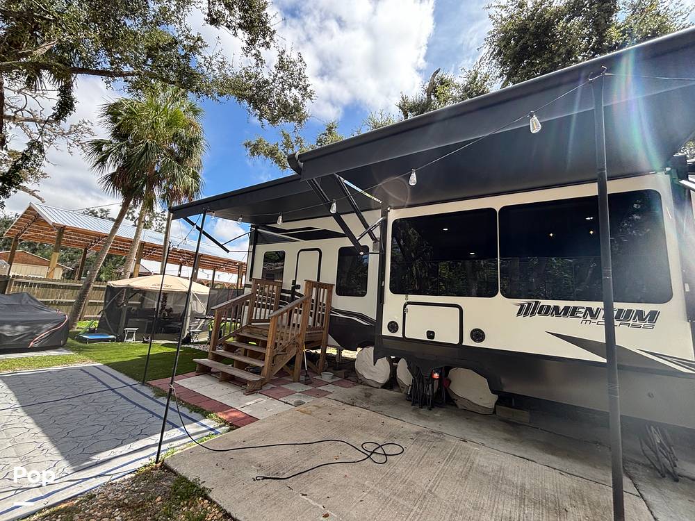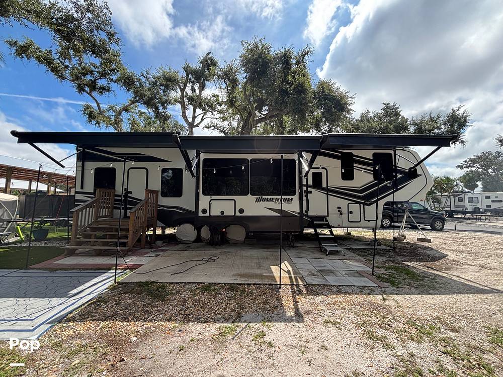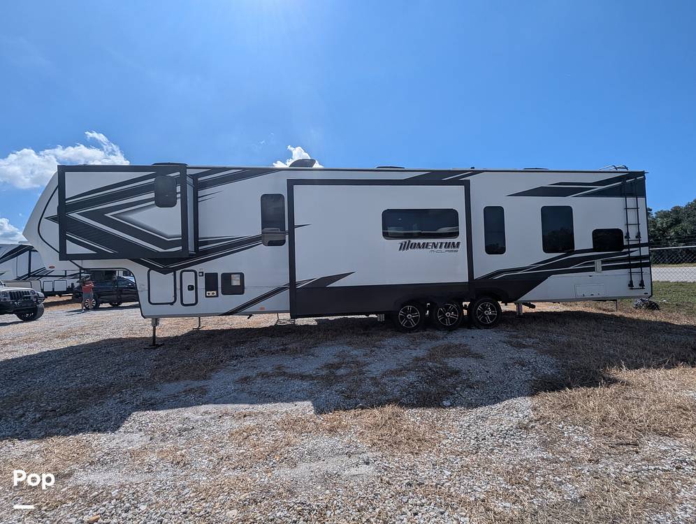 Measuring an impressive 36 feet in length, the Momentum 395MS-R offers a well-thought-out layout that maximizes both living and storage space. The interior is meticulously crafted with high-quality materials and finishes, providing a sophisticated yet welcoming atmosphere. The kitchen is equipped with modern appliances and ample counter space, making meal preparation a breeze. The living area features plush seating and state-of-the-art entertainment options, ensuring relaxation and enjoyment for all occupants.