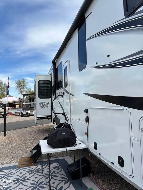 Step inside and be captivated by the spacious and elegantly designed interior. The Solitude 3330RE boasts a sophisticated living area, complete with plush seating and a state-of-the-art entertainment system, making it the ideal space for relaxation and socializing. The fully equipped kitchen features high-end appliances, ample counter space, and a dining area that invites you to savor delicious meals together. Every detail has been thoughtfully crafted to provide a luxurious experience, from the premium finishes to the abundant storage options.