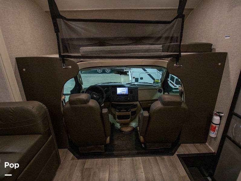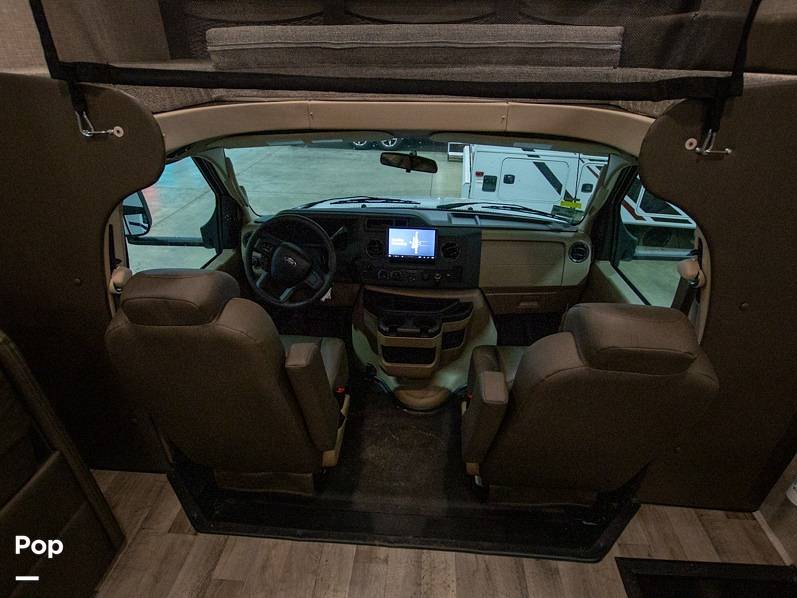 Inside, you'll find a thoughtfully designed interior that maximizes comfort and functionality. The sleeping arrangements include a cozy queen-sized bed, a convertible dinette, and an over-cab bunk, ensuring everyone has a comfortable place to rest. The fully equipped kitchen features modern appliances, including a refrigerator, microwave, and three-burner stove, allowing you to prepare meals with ease. The bathroom offers a shower, toilet, and sink, providing all the conveniences of home on the road.