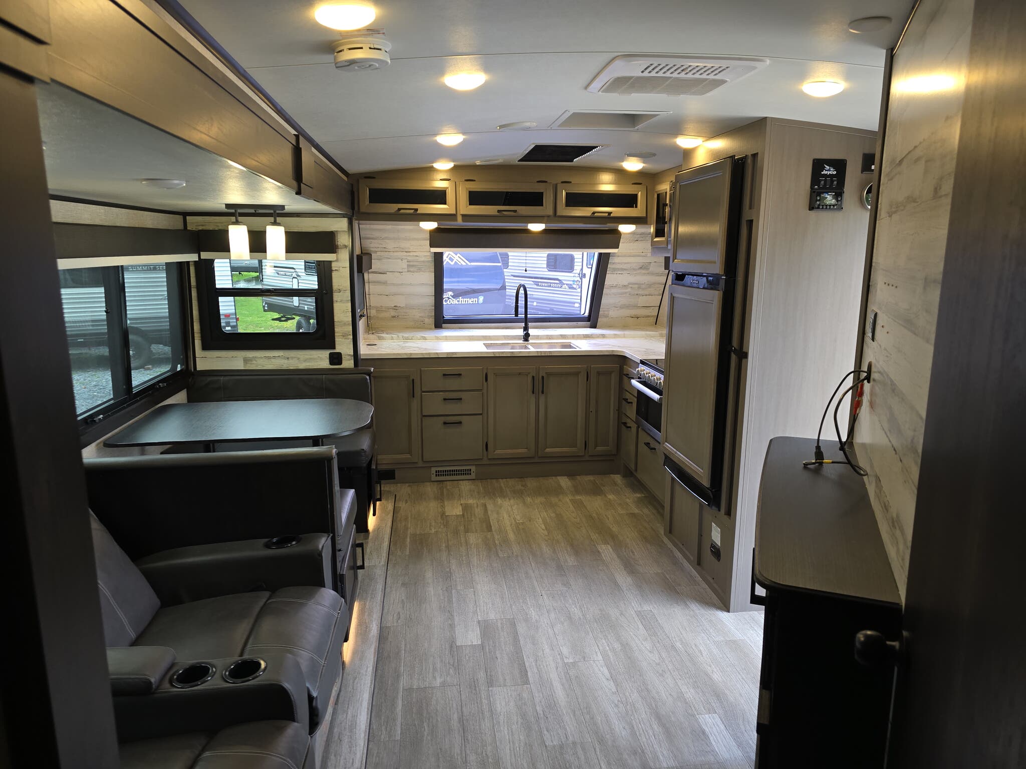 Introducing the 2023 Jayco White Hawk 26FK, a premier travel trailer designed for those who seek both comfort and adventure on the road. This meticulously crafted RV features a front kitchen layout and boasts two spacious slide-outs, offering an expansive living area that ensures a luxurious experience for all occupants. With a length of 27 feet, this travel trailer is expertly designed to provide ample space while remaining easy to maneuver, making it an ideal choice for both seasoned travelers and newcomers alike.