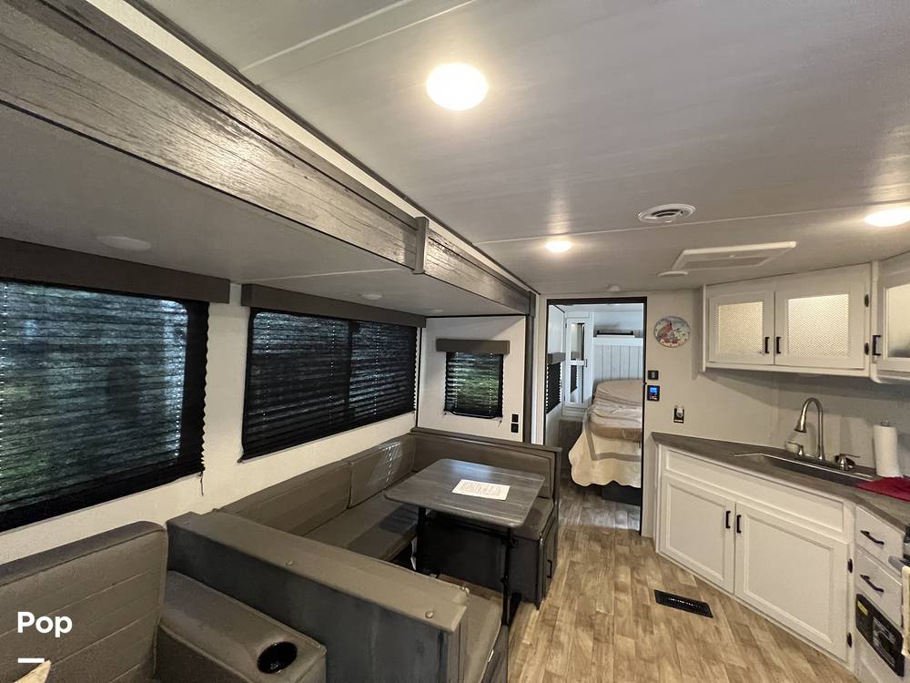 At 27 feet long, the Hideout is spacious yet easy to tow, making it ideal for both seasoned RV enthusiasts and first-timers. Inside, you'll find a smart layout that maximizes space and comfort. The living area is perfect for relaxing after a day of exploring, and the kitchen is fully equipped with modern appliances to whip up your favorite meals on the go. With plenty of storage throughout, you can bring along all your essentials without feeling cramped.