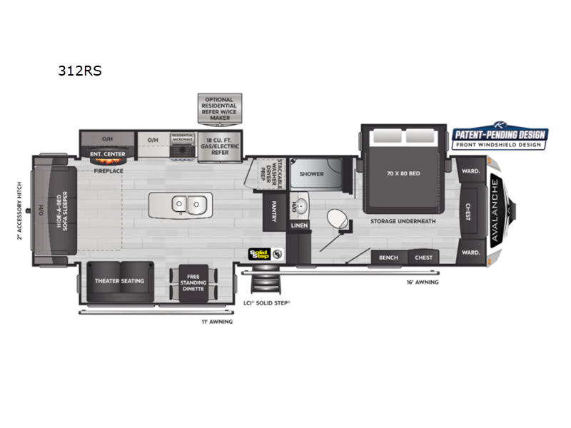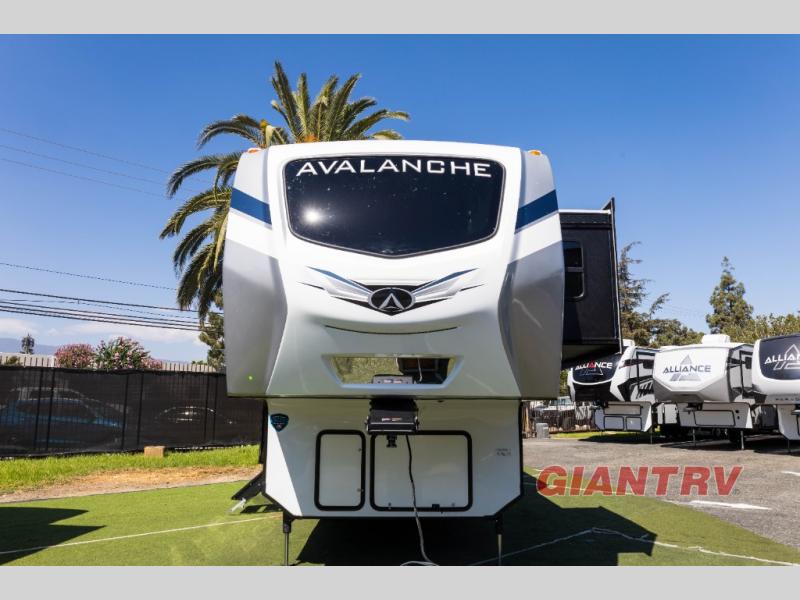 Step inside, and you'll immediately notice the spaciousness, thanks to its three slide-outs. These nifty features expand your living area, giving you room to stretch out and relax. Whether you're lounging in the cozy living room or whipping up a meal in the fully-equipped kitchen, you'll feel right at home. The Avalanche 312RS comfortably sleeps four, making it perfect for family trips or a getaway with friends. The master bedroom offers a plush bed for a restful night's sleep, while the convertible sofa provides additional sleeping space.