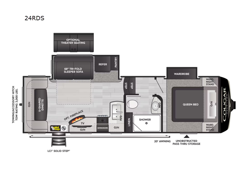 Step inside and be greeted by a thoughtfully designed living space that can comfortably sleep up to four people, making it ideal for family trips or a getaway with friends. The two slide-outs create an open and airy atmosphere, giving you plenty of room to relax and unwind after a day of adventure. The Cougar Half-Ton 24RDS is equipped with all the essentials, including a fully functional kitchen, a cozy dining area, and a comfortable sleeping arrangement, ensuring you have everything you need for a memorable trip.