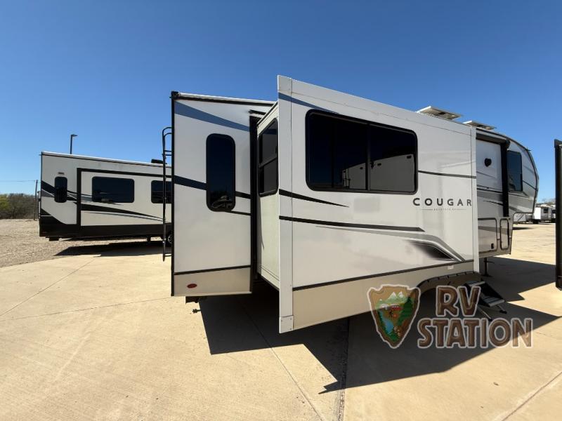 Introducing the 2023 Keystone RV Cougar Half-Ton 27SGS Fifth Wheel, a pinnacle of modern design and functionality, crafted to elevate your travel experiences. This exceptional RV, measuring an impressive 25 feet in length, is engineered to provide both comfort and convenience for the discerning traveler. With a weight of approximately 3,728 kilograms, it strikes the perfect balance between robust construction and ease of towing, making it an ideal choice for those seeking adventure without compromise.