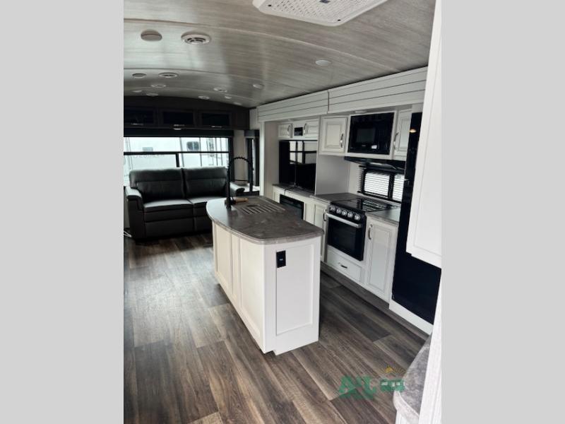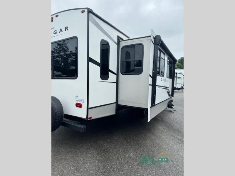 Inside, you'll find accommodations for up to five people, ensuring everyone can enjoy a restful night's sleep. The interior is thoughtfully designed with modern amenities and high-quality finishes, creating a cozy and inviting atmosphere. Whether you're cooking in the fully-equipped kitchen or unwinding in the comfortable living area, this RV is designed to meet all your needs on the road. The Cougar 33RLI is not just about comfort; it’s about creating memorable experiences with family and friends.