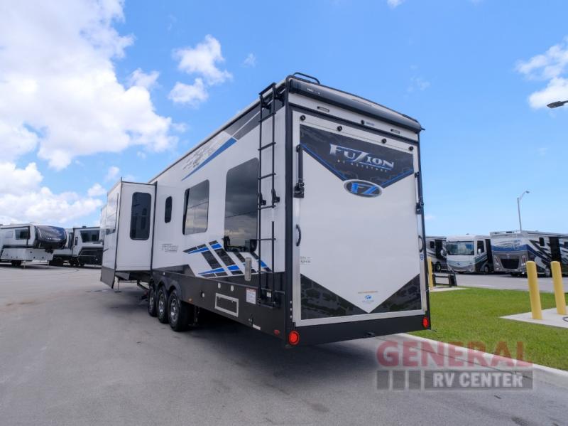 Discover the ultimate adventure companion with the 2023 Keystone RV Fuzion 428 Fifth Wheel, designed to elevate your travel experiences to new heights. This luxurious RV boasts three spacious slide-outs, offering ample living space for you and your loved ones. With the ability to comfortably sleep up to nine people, it's perfect for family trips or group getaways. Whether you're exploring the great outdoors or enjoying a cozy night in, the Fuzion 428 ensures everyone has a comfortable place to rest.