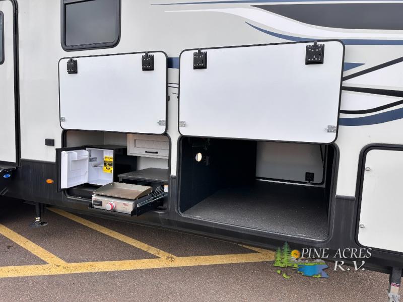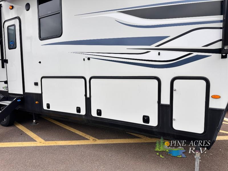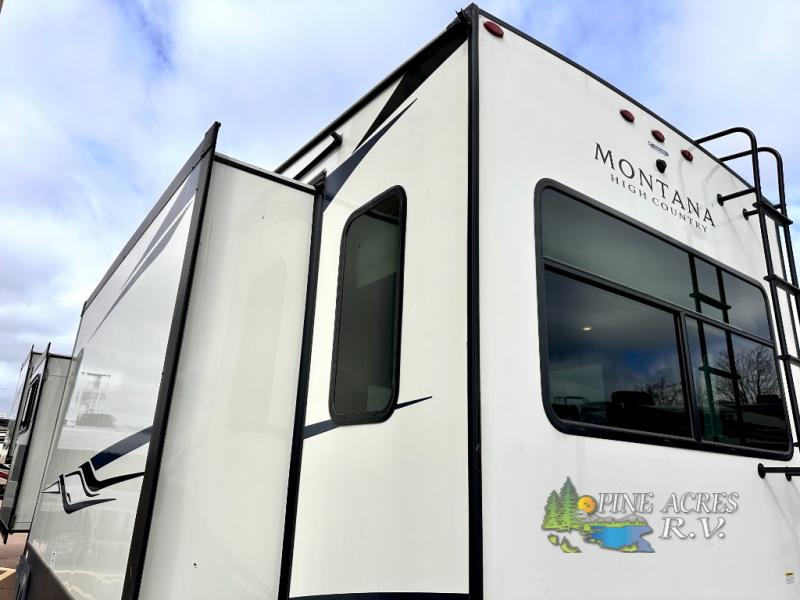 The Montana High Country 385BR features four expansive slide-outs, ingeniously maximizing the interior space to create a welcoming and airy atmosphere. This RV is thoughtfully designed to accommodate up to eight people, making it ideal for family vacations or group excursions. The mid-bunk layout offers a versatile space that can be used as an additional sleeping area or a private retreat, ensuring everyone has their own sanctuary. The interior is adorned with high-quality finishes and state-of-the-art appliances, providing all the comforts of home while on the road.
