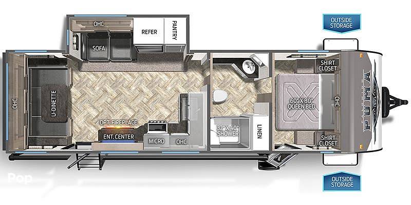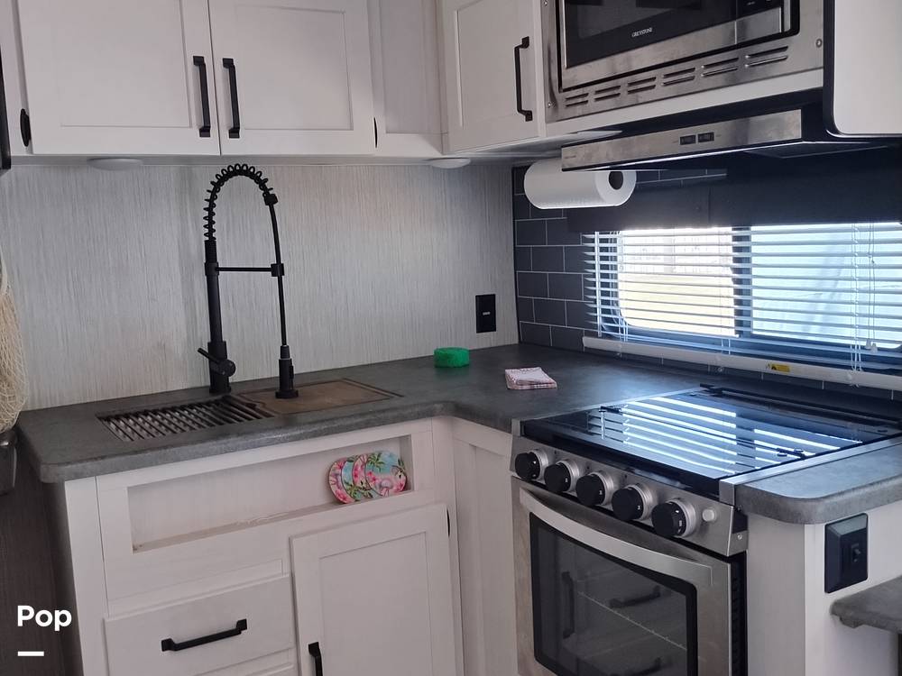 Step inside to find a thoughtfully designed interior that blends style and functionality. The spacious living area is perfect for relaxation, featuring plush seating and a convertible dinette that easily transforms into additional sleeping space. The well-equipped kitchen boasts modern appliances, including a refrigerator, microwave, and stove, ensuring you can prepare delicious meals no matter where the road takes you. With plenty of storage throughout, you'll have all the room you need for your gear and essentials.