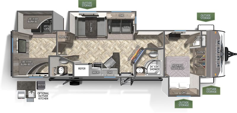 The 2023 Puma 32BHQS, by Palomino, is built to give you better comfort and style, so you can enjoy your travels to the fullest. This travel trailer features an exterior kitchen, a rear bunk room & sleeps up to 11 people. All Pumas are backed with a 1 year manufacturer limited factory warranty. Start enjoying everything the RV lifestyle has to offer with a new RV from Sicard RV.Specifications:VIN: 4X4TPUH23PP099835