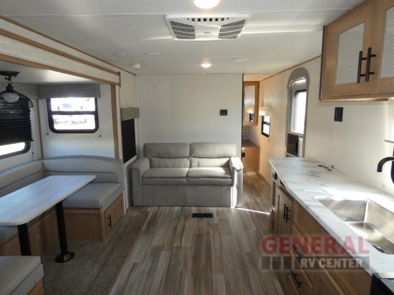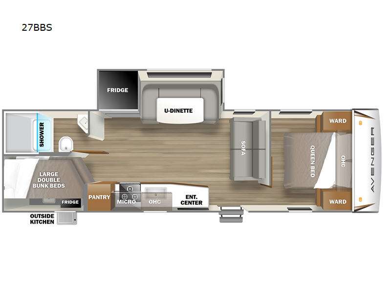 Inside, you'll find a spacious layout thanks to the single slide-out, which really opens up the living area. This RV can comfortably sleep up to 10 people, making it ideal for family trips or a getaway with friends. Whether you're lounging during the day or settling in for the night, the Avenger 27BBS has you covered. The interior is thoughtfully designed with cozy sleeping arrangements, a functional kitchen, and a welcoming living space that feels just like home.