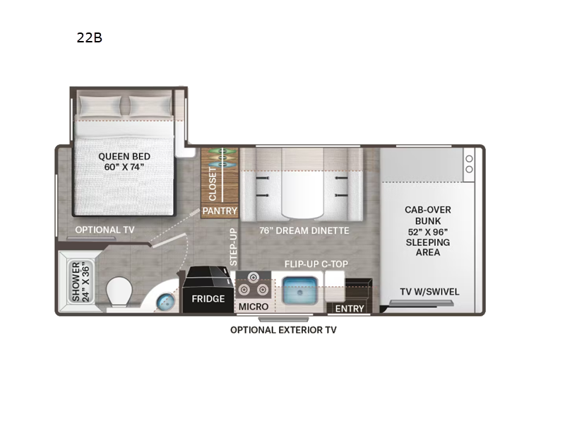 Discover the freedom of the open road with the 2023 Thor Motor Coach Four Winds 22B Class C RV. This compact yet spacious motorhome is designed for adventure seekers and families alike, offering a perfect blend of comfort and convenience. Measuring 20 feet in length, the Four Winds 22B is easy to maneuver, making it ideal for both seasoned travelers and RV newcomers. With a fuel capacity of 208 liters, you can explore further without frequent stops, allowing you to focus on creating unforgettable memories.