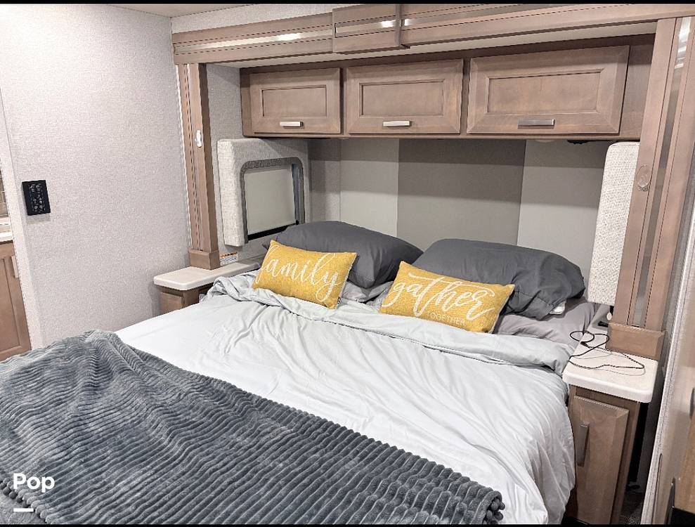 Step inside and be greeted by a beautifully appointed interior that feels like a home away from home. The Palazzo boasts a spacious living area with plush seating, a fully equipped kitchen with modern appliances, and a cozy dining space perfect for family meals or game nights. The sleeping arrangements include a luxurious master suite, a convertible sofa bed, and an overhead bunk, ensuring everyone has a comfortable place to rest. With thoughtful storage solutions throughout, you'll have plenty of room to bring along all your travel essentials.