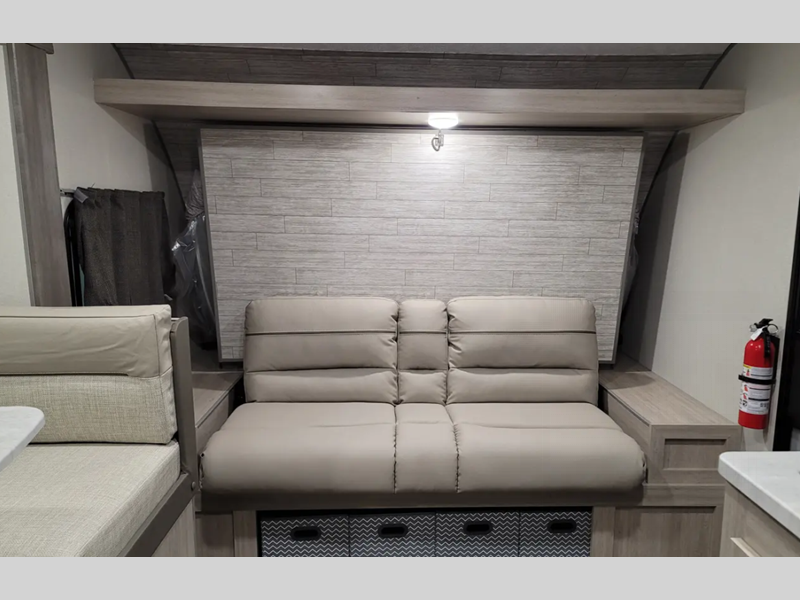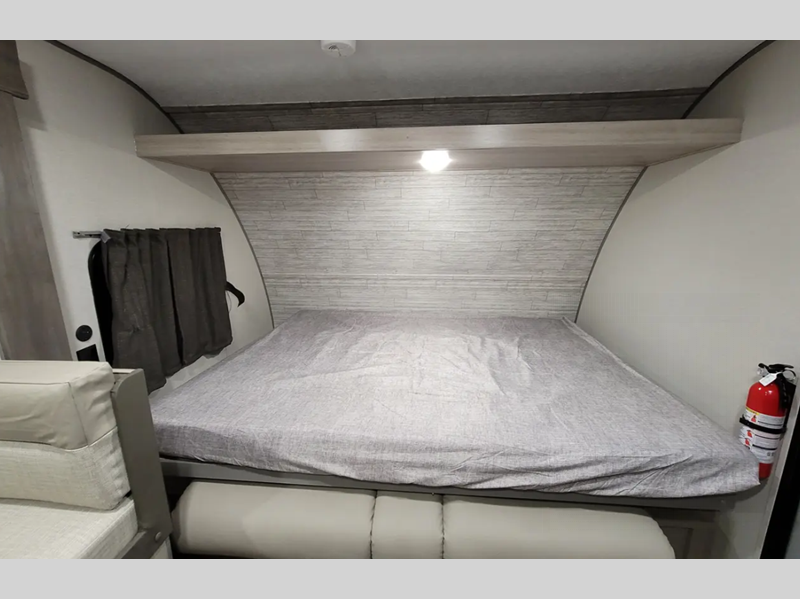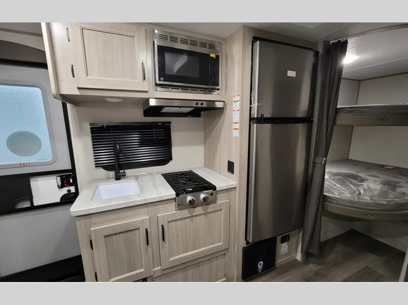 Inside, you'll find a cleverly designed layout that can sleep up to 8 people, making it perfect for family getaways or trips with friends. The single slide-out expands the living area, giving you extra room to relax and enjoy your time on the road. The interior is thoughtfully arranged with cozy sleeping quarters, a functional kitchen, and a comfortable dining area, ensuring you have all the comforts of home while exploring the great outdoors.