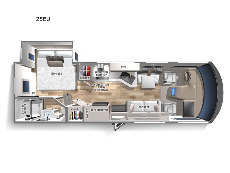 Fuel efficiency meets capacity with a generous 303-liter fuel tank, allowing you to explore further without frequent stops. Whether you're planning a cross-country adventure or a weekend escape, the Euro 25EU is your ticket to freedom and exploration. Don't miss the opportunity to own this remarkable RV that combines style, comfort, and practicality in one sleek package. Embrace the open road and create unforgettable memories with the 2024 Coachmen RV Euro 25EU Class A. Your adventure awaits!