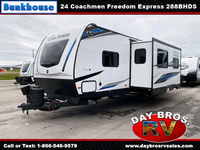 Discover the ultimate travel companion with the 2024 Coachmen RV Freedom Express Ultra Lite 288BHDS Travel Trailer. This exceptional RV is designed to elevate your adventures, offering a perfect blend of comfort, convenience, and style. With a length of 27 feet, this travel trailer is compact enough for easy towing yet spacious enough to accommodate your family's needs. Weighing in at just 3,055 kg, it ensures a smooth and efficient journey, whether you're exploring the countryside or heading to your favorite campsite.
