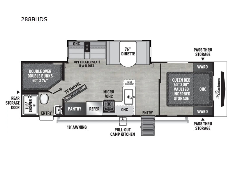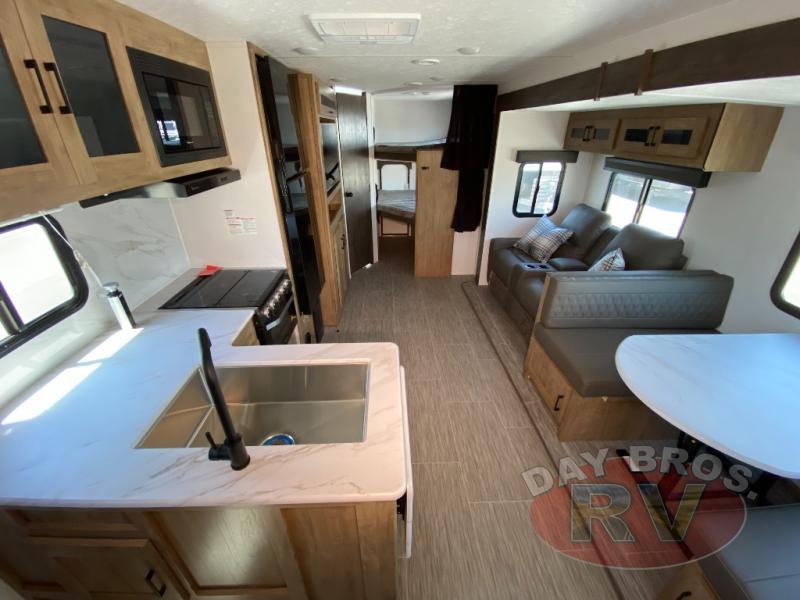 Inside, the Freedom Express Ultra Lite 288BHDS boasts a thoughtfully designed layout with one slide-out, providing ample living space for relaxation and entertainment. This versatile travel trailer can comfortably sleep up to eight people, making it ideal for family vacations or trips with friends. The well-appointed interior features modern amenities, including a fully equipped kitchen, cozy sleeping quarters, and a stylish bathroom, ensuring you have all the comforts of home wherever you roam.
