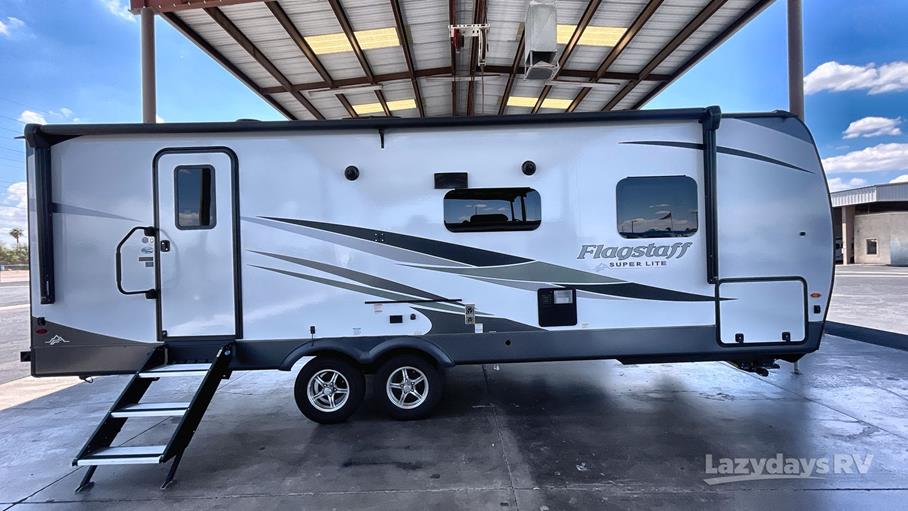 The Flagstaff High Wall 26RBWS is equipped with two strategically placed slide-outs, significantly enhancing the interior space and providing a roomy atmosphere for relaxation and entertainment. The intelligent layout includes a well-appointed kitchen, complete with high-quality appliances and generous storage, ensuring you have everything you need to prepare meals with ease. The living area is designed for comfort, featuring plush seating and modern amenities to make every journey enjoyable.