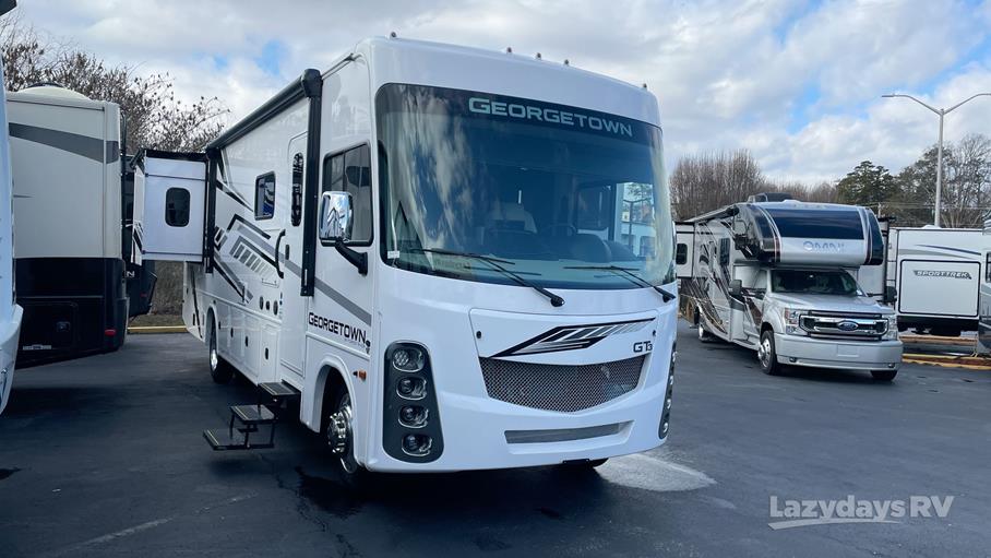 This spacious motorhome features two slide-outs, significantly expanding the living area to create a comfortable and inviting environment. Measuring 29 feet in length, the Georgetown 32A3 offers ample room for relaxation and entertainment. The intelligently designed floor plan can comfortably sleep up to five people, making it perfect for family trips or outings with friends. The interior is equipped with high-quality furnishings and modern amenities, ensuring a luxurious experience wherever your travels take you.