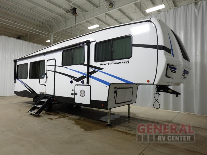 The Impression 282RLVIEW features two slide-outs, significantly enhancing the interior space to create a roomy and inviting atmosphere. This model is thoughtfully designed to accommodate up to four individuals, making it ideal for couples or small families seeking a cozy retreat. The interior is meticulously crafted with high-quality materials and finishes, ensuring a luxurious and comfortable stay. The well-appointed kitchen, complete with modern appliances, allows for convenient meal preparation, while the elegant living area provides a perfect setting for relaxation and entertainment.