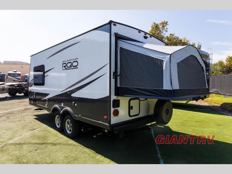 Discover the ultimate blend of comfort, convenience, and adventure with the 2024 Forest River RV Rockwood Roo 19 Hybrid. This versatile RV is designed to cater to your family's wanderlust while providing all the comforts of home. With a spacious interior that comfortably sleeps up to six people, this hybrid trailer is perfect for family getaways, road trips with friends, or a romantic escape for two.