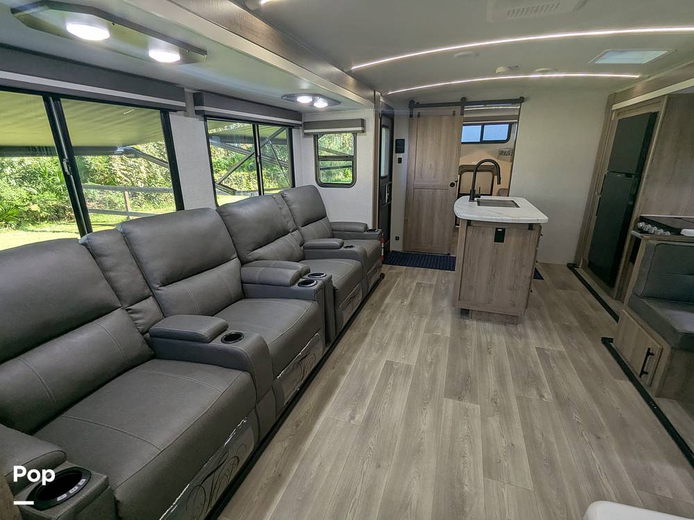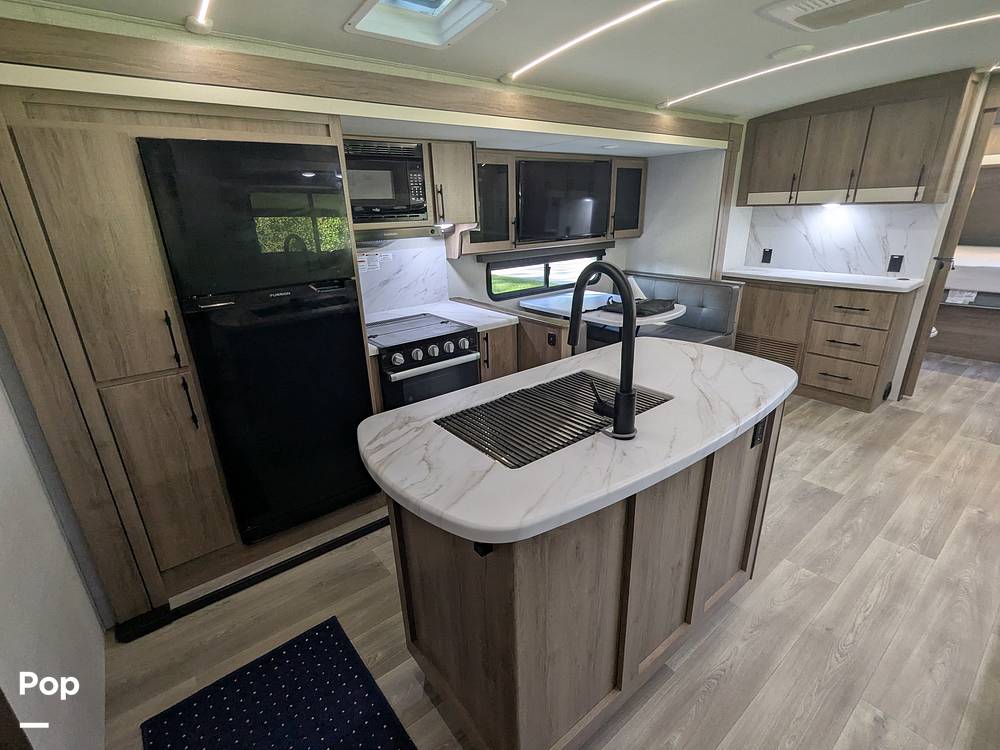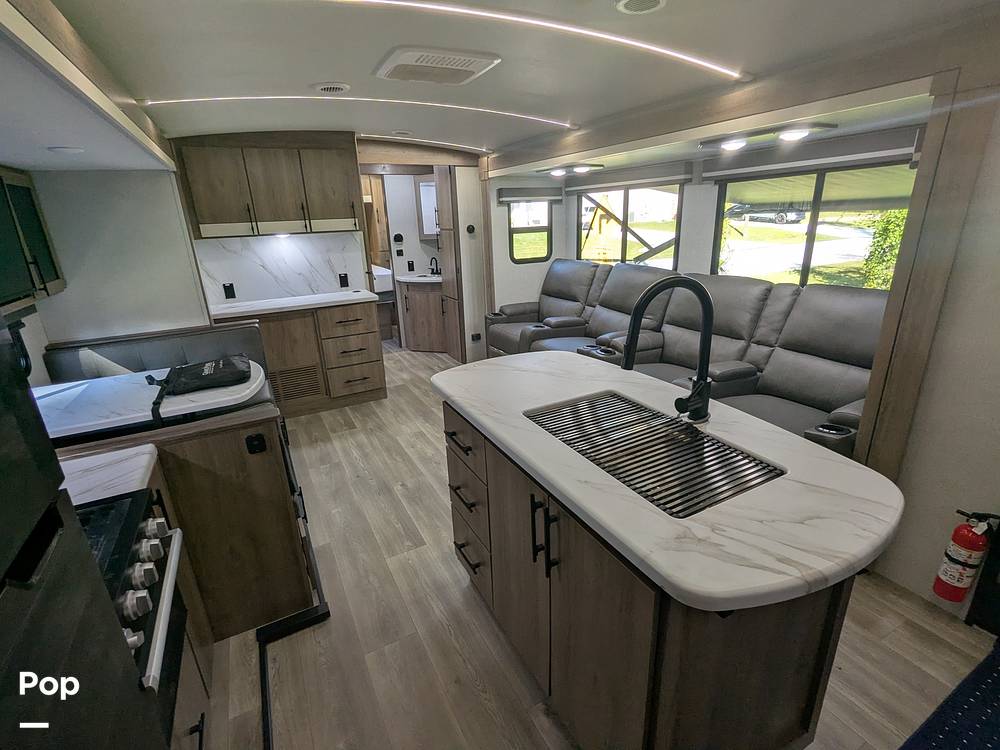 Outside, the Imagine 3210BH continues to impress with its sleek design and practical features. The exterior includes a large awning for shaded relaxation, an outdoor kitchen for al fresco dining, and plenty of storage compartments to keep all your gear organized. Whether you're planning a weekend getaway or an extended road trip, this travel trailer is your ticket to unforgettable adventures. Embrace the freedom of the open road and create lasting memories with the 2024 Grand Design Imagine 3210BH Travel Trailer. Your next adventure awaits!