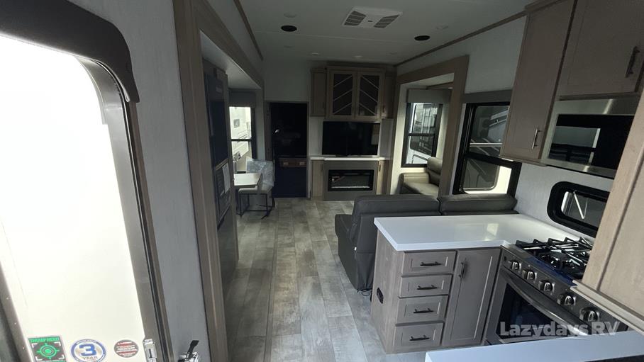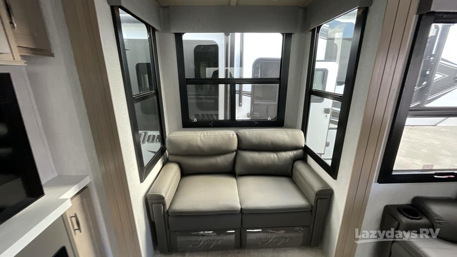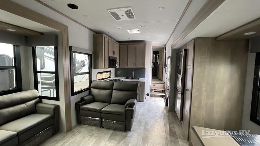 Beyond its luxurious interior, the Momentum M-Class 414M is built for adventure. The large garage space is perfect for storing your outdoor gear or even a small vehicle, making it easy to bring along everything you need for your adventures. With its robust construction and innovative features, this fifth wheel is designed to handle all terrains, from rugged mountain trails to serene lakeside retreats. Don’t miss the opportunity to own this exceptional RV that promises to elevate your travel experiences to new heights. Embrace the journey and make unforgettable memories with the 2024 Grand Design Momentum M-Class 414M.