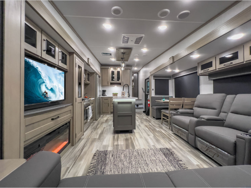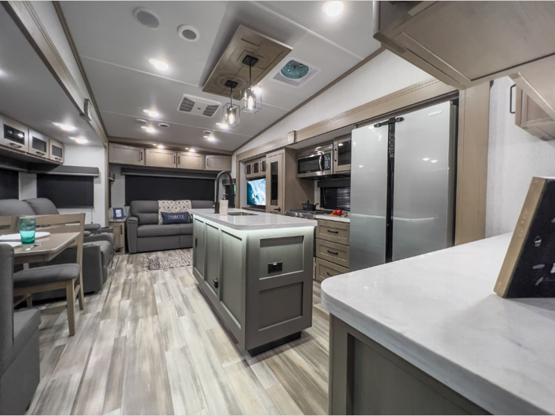 This beauty boasts three slide-outs, giving you extra room to stretch out and relax. Whether you're lounging in the spacious living area or whipping up a meal in the fully-equipped kitchen, you'll appreciate the thoughtful layout and modern amenities. The Reflection 337RLS comfortably sleeps up to five people, making it ideal for family trips or a getaway with friends. The cozy sleeping quarters ensure everyone has a comfy spot to rest after a day of exploring.