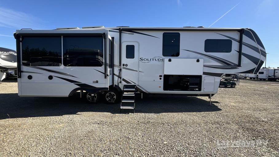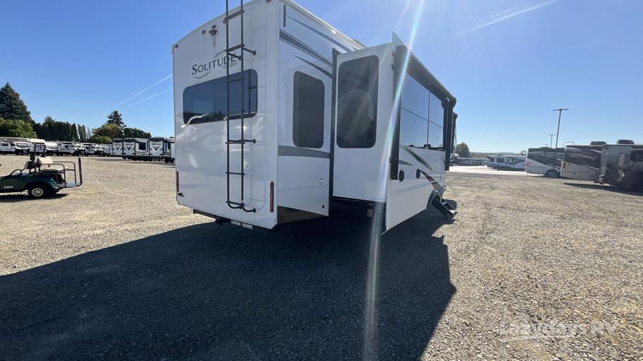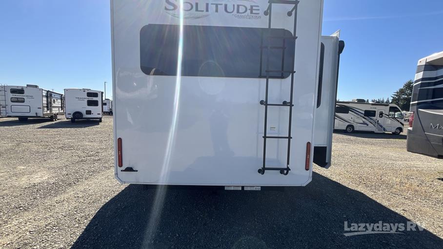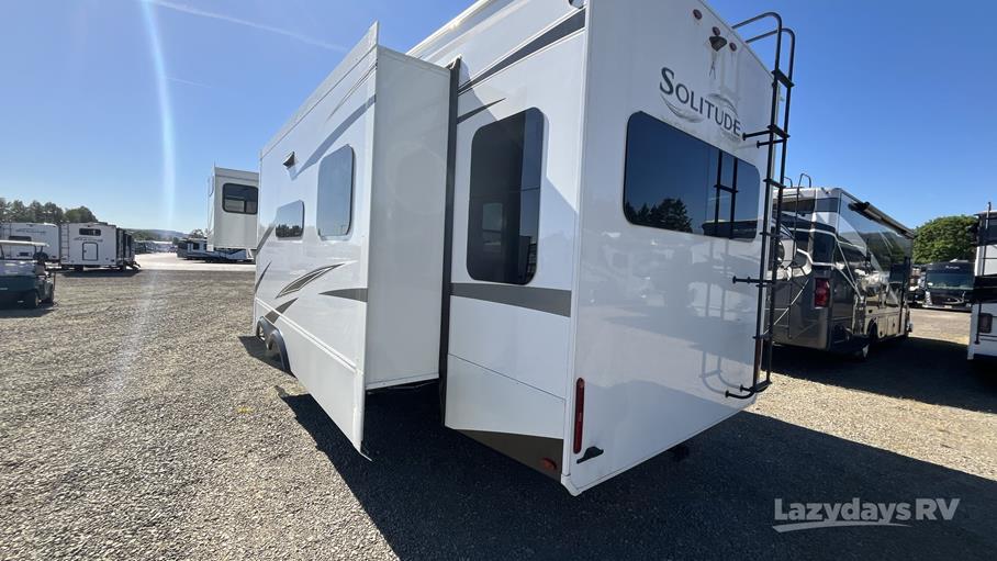 The Solitude 370DV features three expansive slide-outs, significantly enhancing the living space and providing a roomy interior that can comfortably sleep up to four people. Whether you're traveling with family or friends, everyone will appreciate the thoughtful layout and premium amenities. The master suite offers a plush queen-sized bed, while the living area includes a convertible sofa for additional sleeping space. The fully equipped kitchen boasts modern appliances, ample counter space, and a dining area, making meal preparation a breeze.