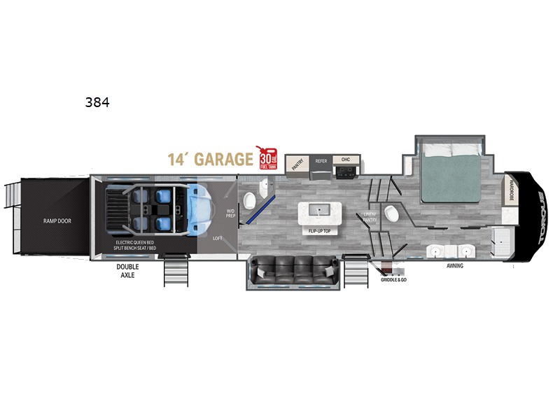 The Heartland Torque 384 is not just about practicality; it also boasts a range of premium features that enhance your travel experience. From its modern amenities to its stylish design, every detail is crafted to elevate your journey. Whether you're embarking on a cross-country expedition or a weekend escape, the 2024 Heartland Torque 384 Fifth Wheel is your ultimate companion, promising comfort, convenience, and a touch of luxury at every turn. Embrace the open road with confidence and style in this remarkable RV.