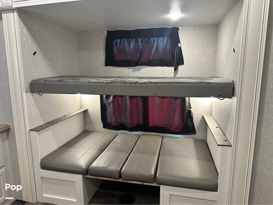 Measuring an impressive 36 feet in length, the Open Range 395BHS provides ample space for relaxation and entertainment. The thoughtfully designed floor plan includes a master suite, a cozy bunkhouse, and a convertible living area, ensuring everyone has their own space to unwind. The modern kitchen is equipped with top-of-the-line appliances, making meal preparation a breeze, while the elegant dining area invites you to enjoy your culinary creations in style. The luxurious bathroom facilities offer all the conveniences you need, ensuring a comfortable and refreshing experience on the road.