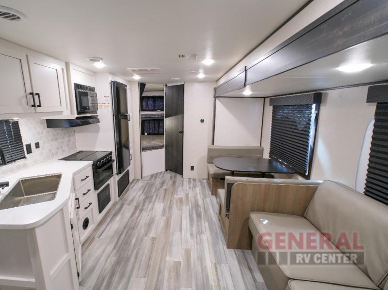 The 26BHS model features one slide-out, which significantly expands the living area, providing extra room for relaxation and entertainment. Inside, you'll find a well-appointed interior with modern amenities to enhance your comfort on the road. The sleeping arrangements are versatile, including a master bedroom, bunk beds, and convertible seating areas, ensuring everyone has a cozy place to rest after a day of exploration.