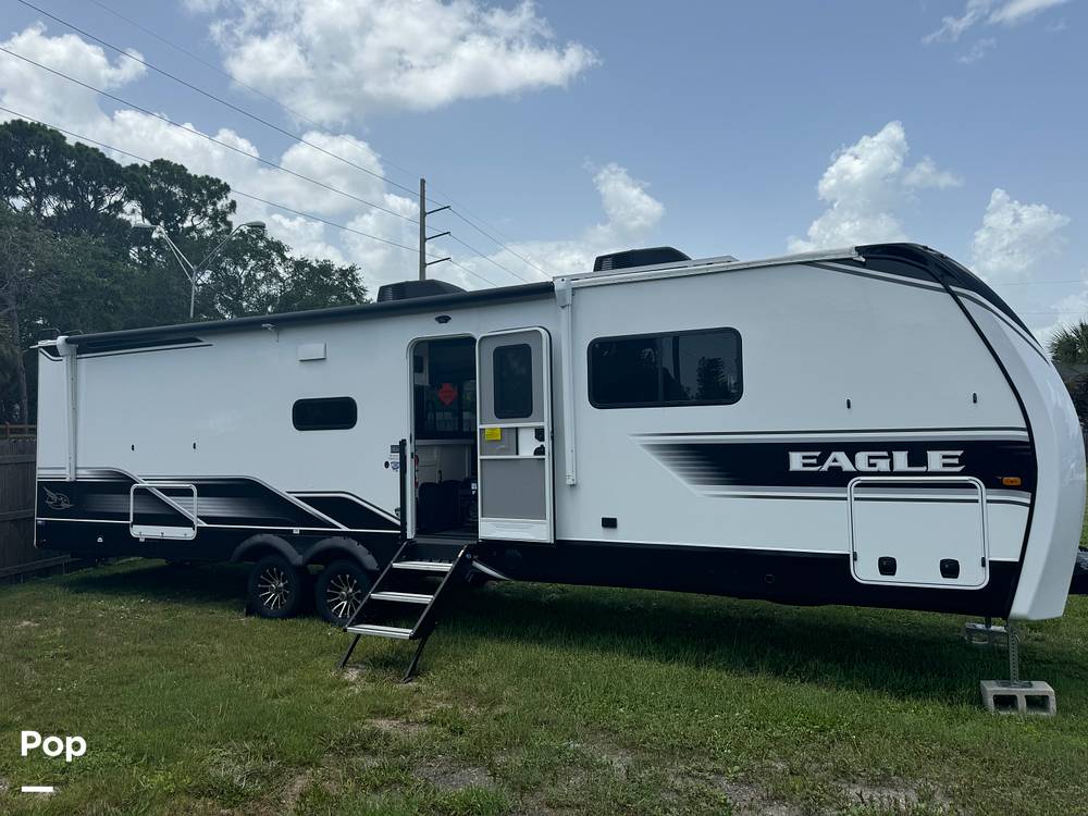 Discover the ultimate travel companion with the 2024 Jayco Eagle 320FBOK Travel Trailer, a perfect blend of luxury and practicality designed to elevate your adventures. Measuring an impressive 32 feet in length, this travel trailer offers ample space for families and friends, comfortably accommodating up to six sleepers. Whether you're embarking on a weekend getaway or an extended road trip, the Jayco Eagle ensures you travel in style and comfort.