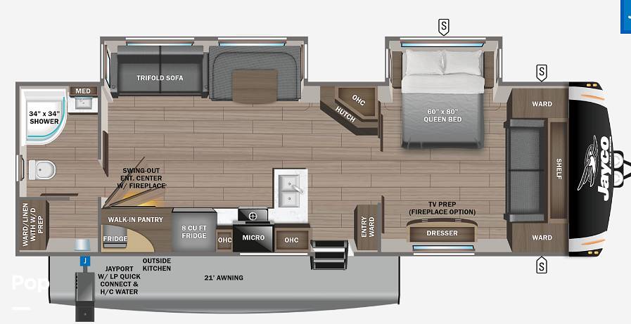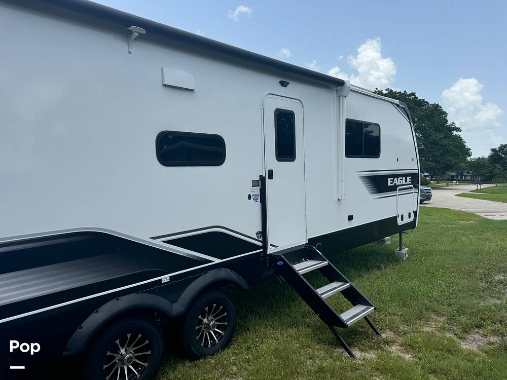 Outside, the Jayco Eagle 320FBOK continues to impress with its robust construction and sleek design. The exterior kitchen is a standout feature, allowing you to enjoy the great outdoors while cooking up your favorite meals. With ample storage space, you can bring along all your essentials without compromise. This travel trailer is not just a vehicle; it's a home on wheels, ready to take you to new horizons. Don't miss the opportunity to own this exceptional travel trailer that promises unforgettable journeys and cherished memories. Act now and make the 2024 Jayco Eagle 320FBOK your gateway to adventure!