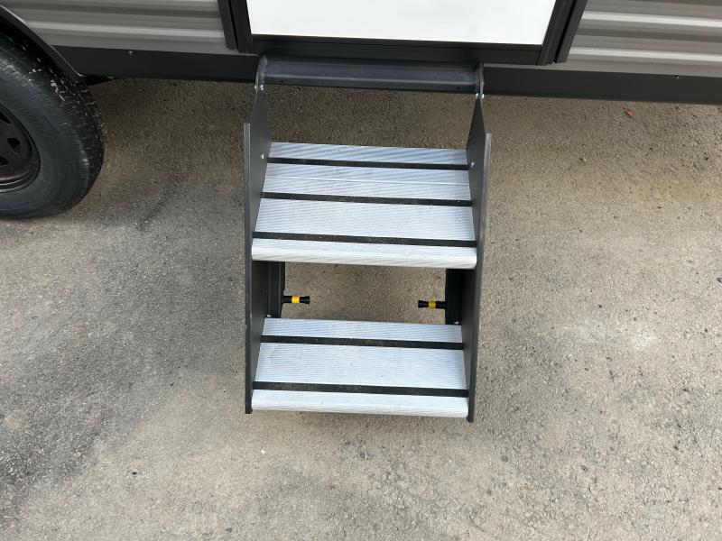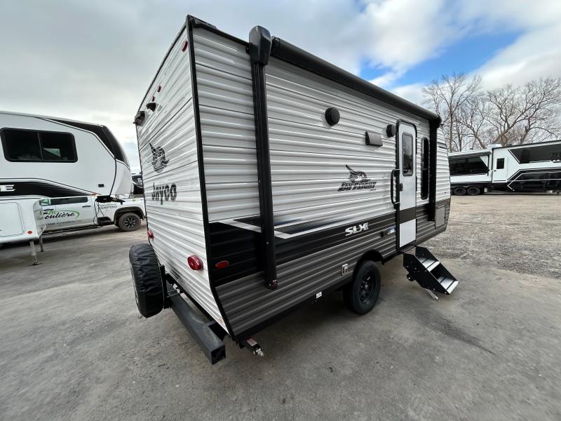 Inside, the Jay Flight SLX 7 183RB boasts a well-appointed living space that maximizes functionality without compromising on style. The interior features a spacious sleeping area, a fully equipped kitchen with modern appliances, and a cozy dining space, all designed to provide the comforts of home while on the road. The bathroom is efficiently laid out, offering a shower and essential amenities to ensure your comfort. With ample storage solutions throughout, this travel trailer ensures that all your travel essentials are neatly organized and easily accessible.