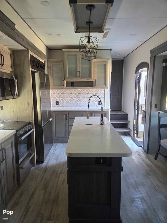 Step inside and be captivated by the thoughtfully designed interior that combines elegance with functionality. The Avalanche 390DS boasts a modern kitchen equipped with top-of-the-line appliances, ample counter space, and a cozy dining area, making meal preparations a delight. The living area is a haven of relaxation, featuring plush seating and a state-of-the-art entertainment system, ensuring that every moment spent indoors is as enjoyable as the adventures outside. The master suite offers a private retreat with a luxurious queen-sized bed, while additional sleeping arrangements include a loft and convertible furniture, ensuring everyone has a comfortable place to rest.