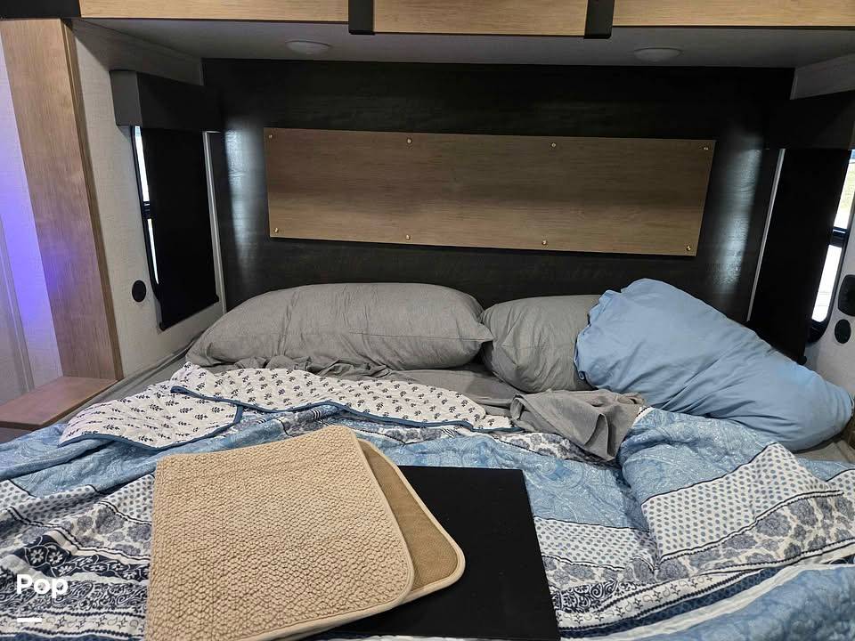 Step inside to discover a thoughtfully designed interior that seamlessly blends style with practicality. The spacious living area is adorned with premium furnishings and state-of-the-art amenities, ensuring a home-like atmosphere on the road. The well-appointed kitchen features modern appliances and ample storage, allowing you to prepare gourmet meals with ease. The sleeping arrangements are equally impressive, with a master suite, convertible sofas, and bunk beds, ensuring restful nights for everyone on board.