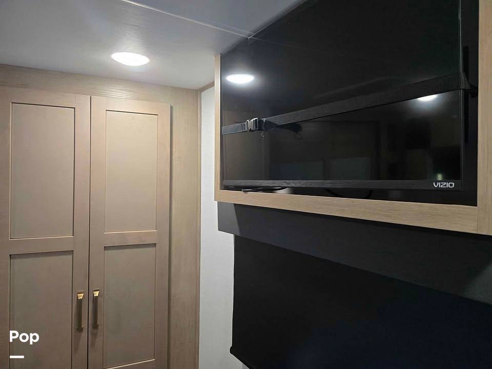 Beyond its elegant interior, the Keystone Raptor 415 is engineered for performance and reliability. Its robust construction and advanced technology provide a smooth and secure ride, while the exterior boasts ample storage compartments for all your travel essentials. Whether you're embarking on a cross-country journey or a weekend getaway, this travel trailer promises an unparalleled experience, combining the freedom of the open road with the comforts of home. Embrace the adventure and make lasting memories with the 2024 Keystone Raptor 415.
