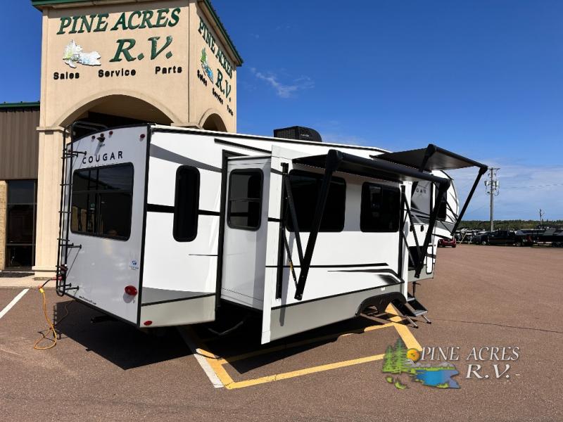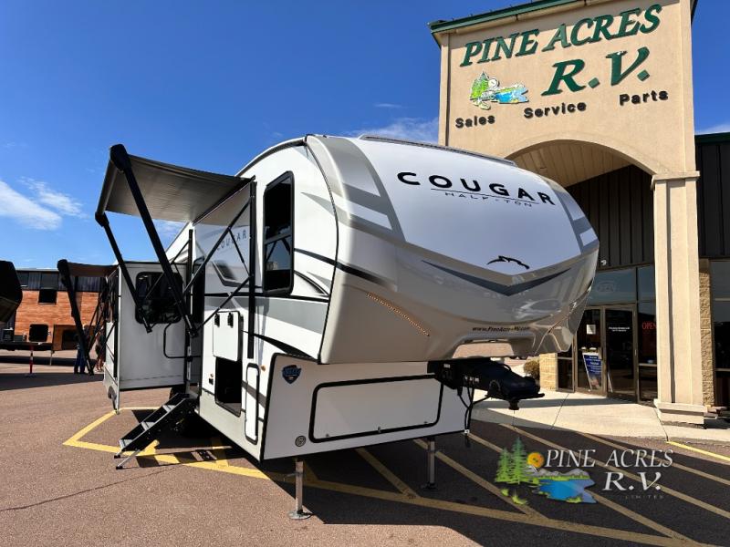 Step inside and be greeted by a spacious interior, thanks to its three slide-outs that maximize living space. Measuring 27 feet in length, the Cougar Half-Ton 29RLI offers ample room for relaxation and entertainment. Whether you're planning a family getaway or a road trip with friends, this RV comfortably sleeps up to five people. The well-appointed kitchen, cozy living area, and inviting sleeping quarters ensure that everyone can unwind in style after a day of adventure.